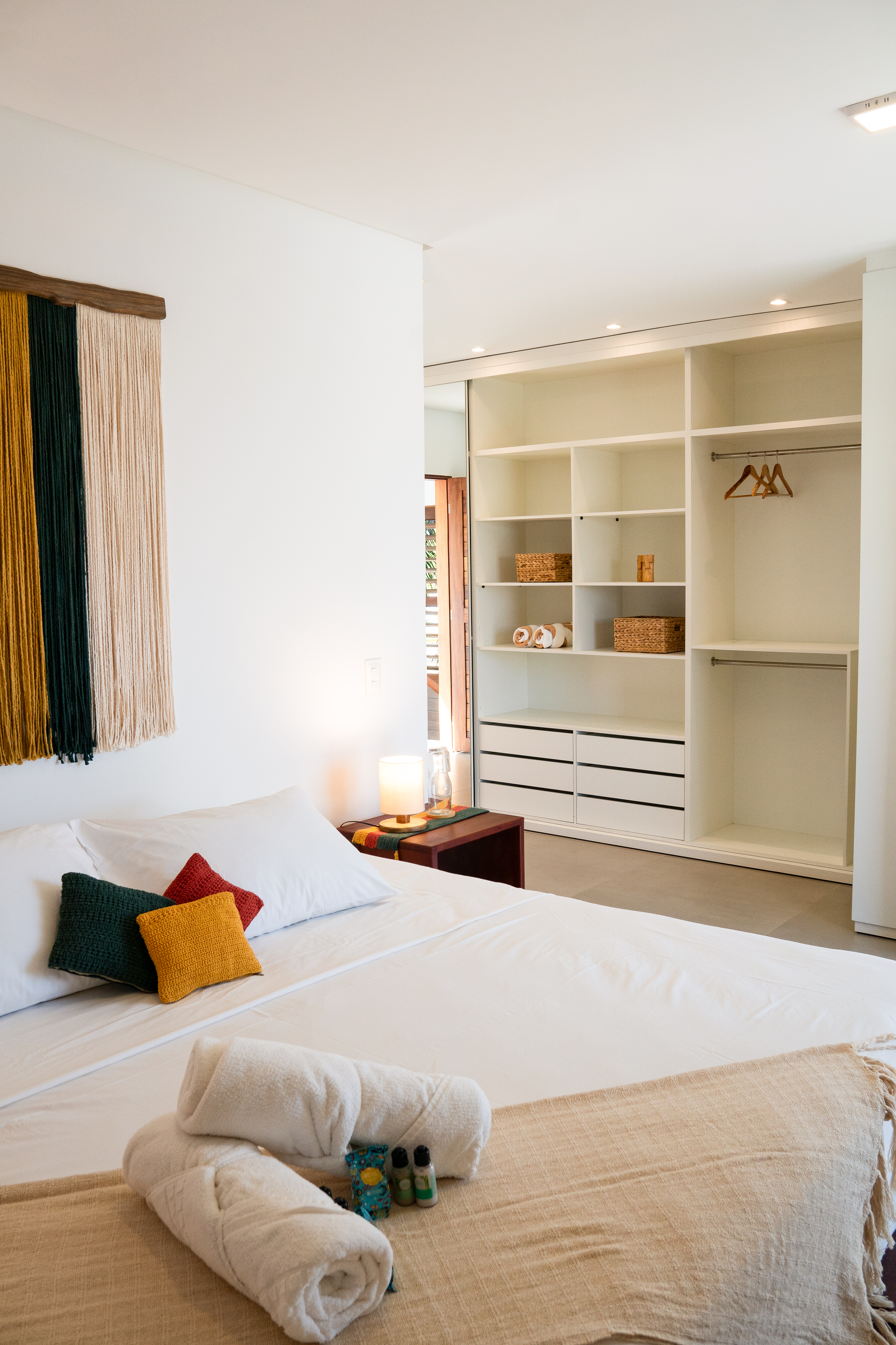 Localizada no andar superior da casa, nossa suíte Hana oferece a vista perfeita para o pôr do sol e uma confortável cama king-size.